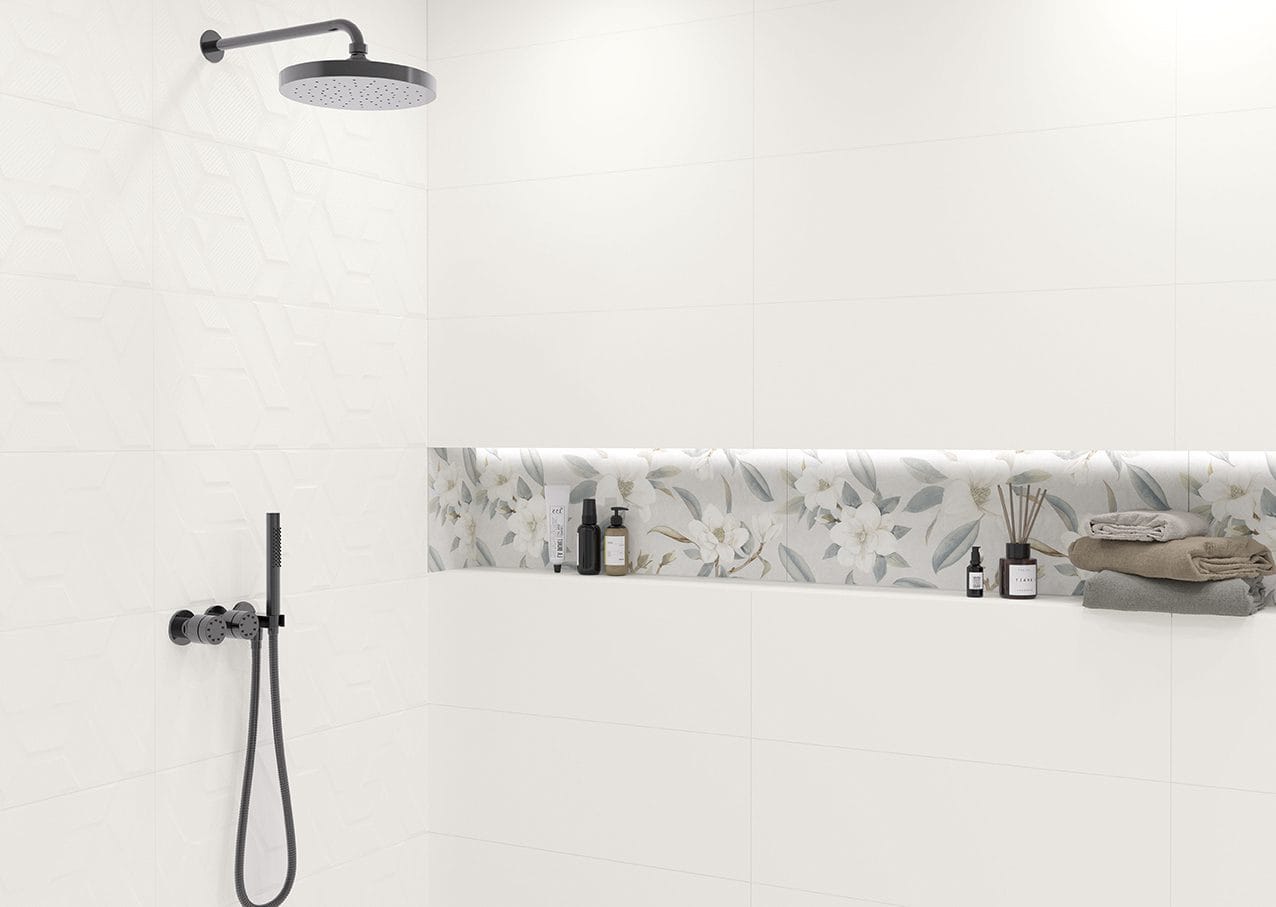 El modelo ARLEQUÍN 32×89 es una azulejo de pasta blanca rectificada con relieve.