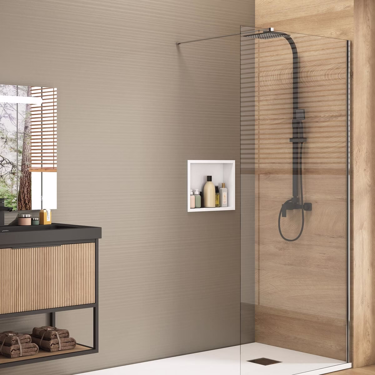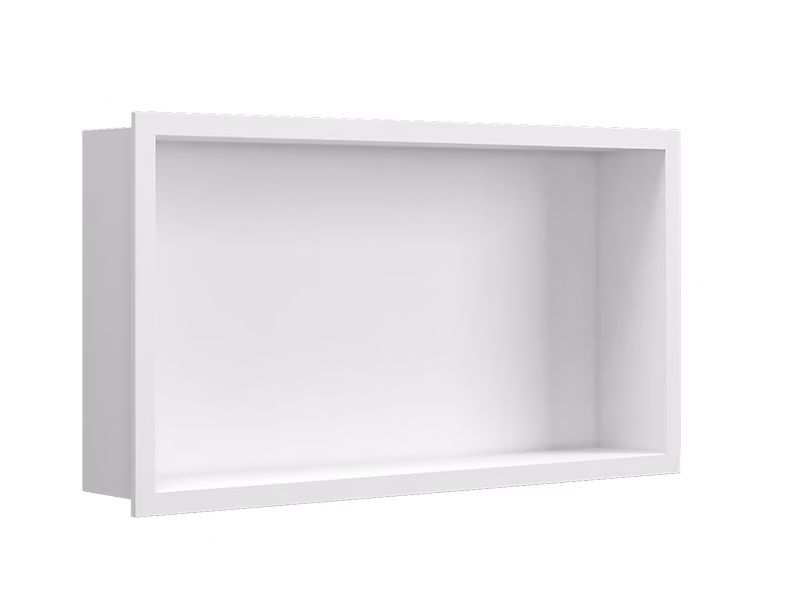 Las hornacinas de Solid Surface son completamente estancas. Están diseñadas con una pendiente del 0,1% en cada uno de sus lados, lo que permite un drenaje efectivo del agua. Además, incluyen un pequeño marco de 1 cm, el cual evita que la humedad se filtre a través de las juntas de los azulejos. Su superficie lisa, suave y sin juntas les confiere propiedades antibacterianas, asegurando una solución higiénica y duradera.
