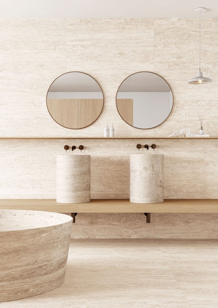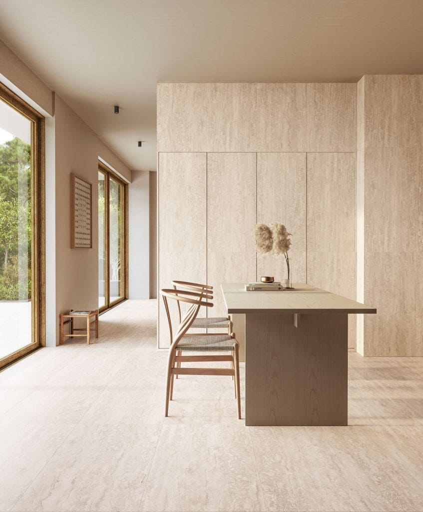 PALATINO es una colección de material porcelánico tipo mármol travertino que se presenta como respuesta a una tendencia donde la nostalgia apunta al pasado, a los diseños y elementos decorativos inspirados en la Antigua Grecia sobre fondos de materiales traídos de los mismos templos del Monte Palatino de la Antigua Roma.