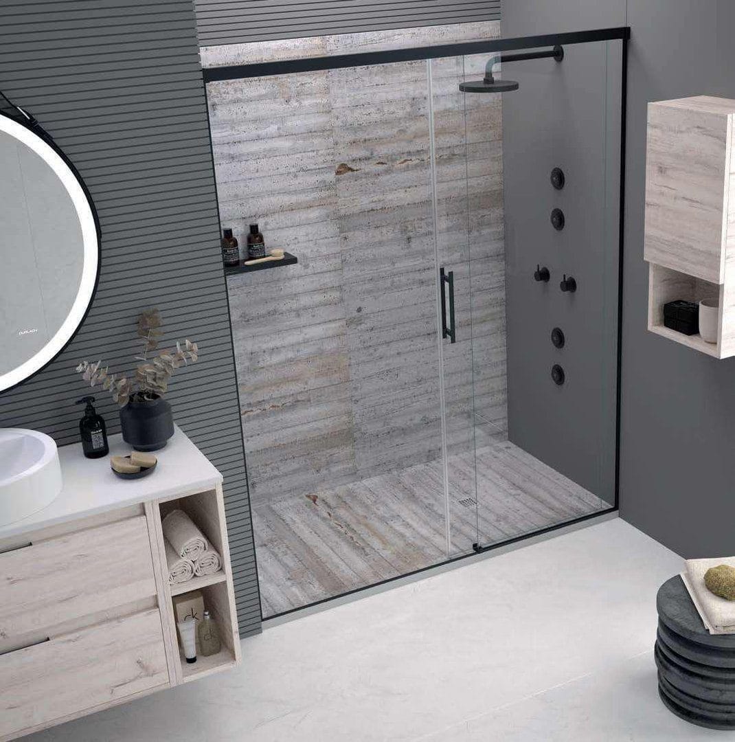Descubre todos nuestros modelos de plato de ducha con acabado cemento / oxido con su rejilla cuadrada mimetizada con el plato.