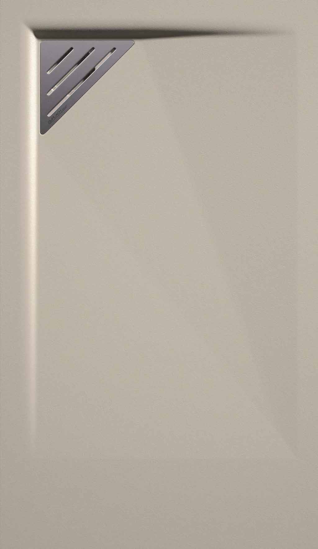 Plato de ducha carga mineral STONE MIO con rejilla en esquina.