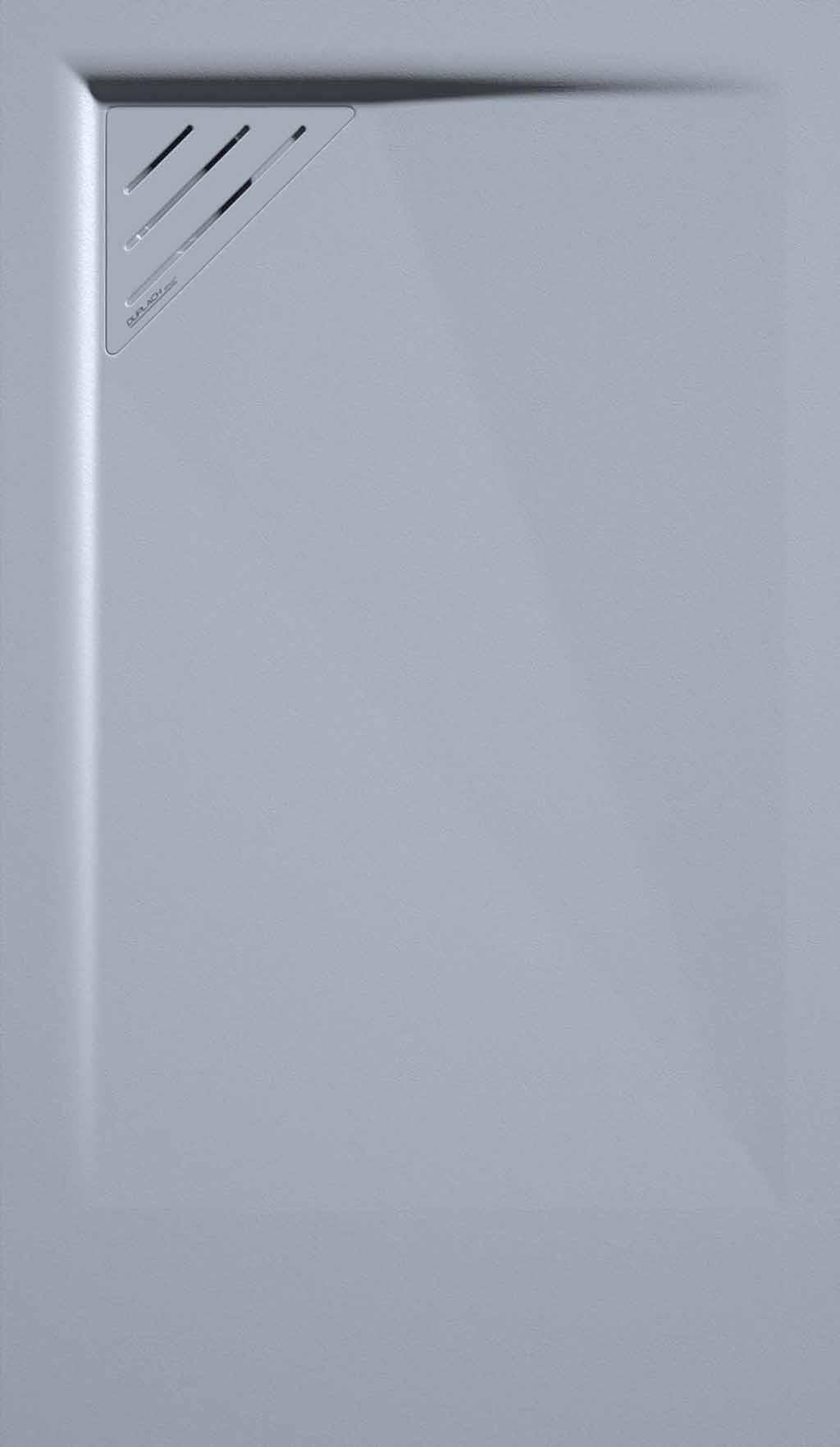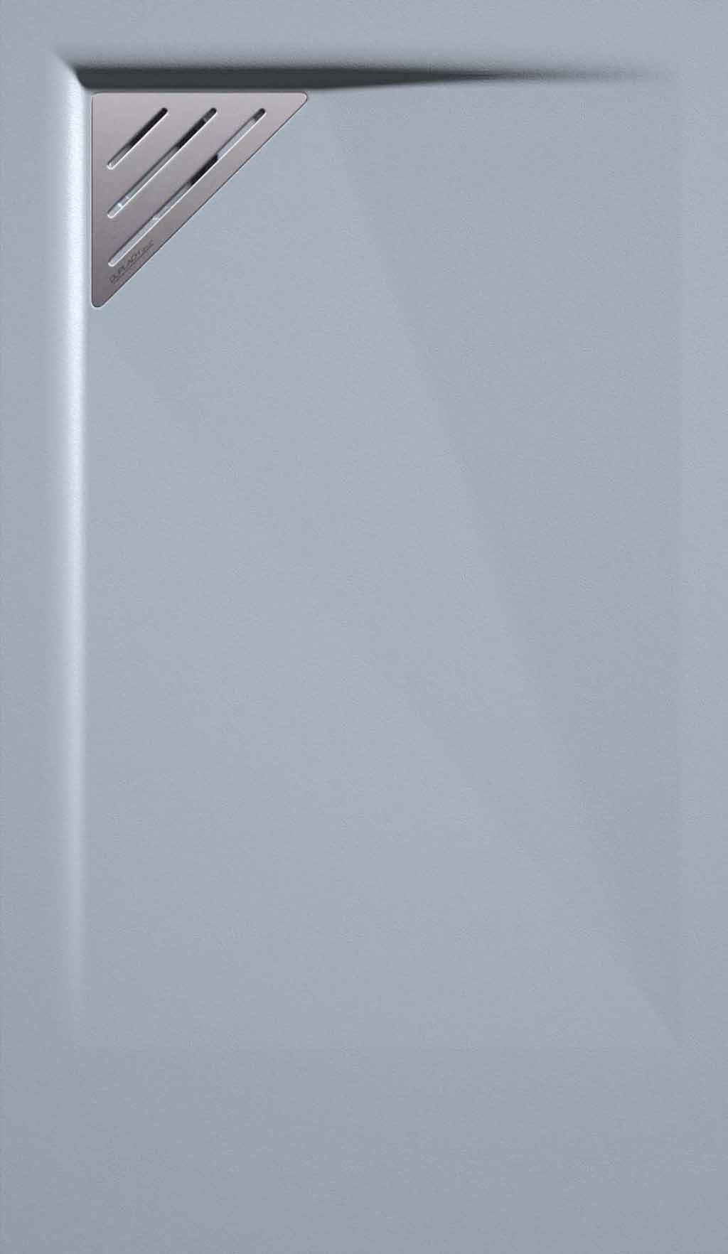 Plato de ducha carga mineral STONE MIO con rejilla en esquina.