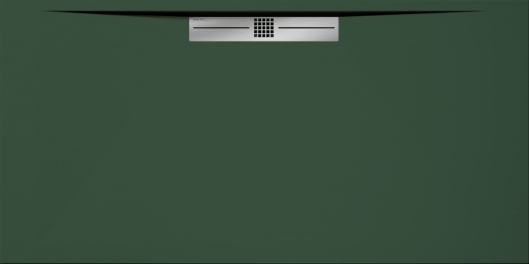Plato de ducha carga mineral STONE SIDE con pendiente centrada y rejilla rectangular.