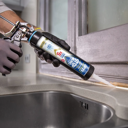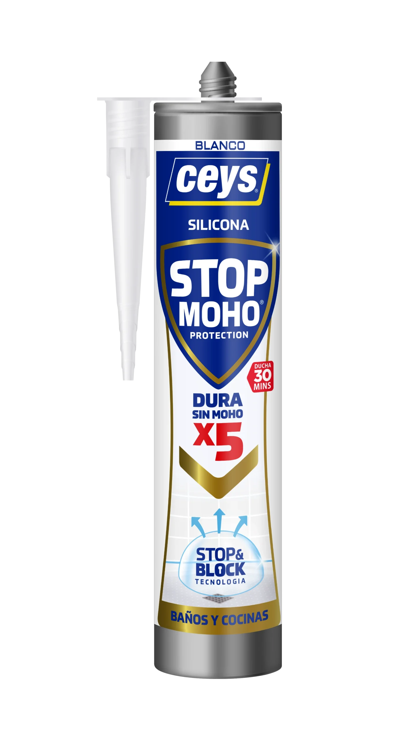 La Stop Moho es una silicona superior para baños y cocinas, única gracias a la combinación de 2 exclusivas propiedades: Tecnología TLC que evita que el moho y la suciedad se deposite sobre la silicona con lo que no ennegrece y permanecerá limpia y sin moho 5 veces más tiempo que una silicona normal.