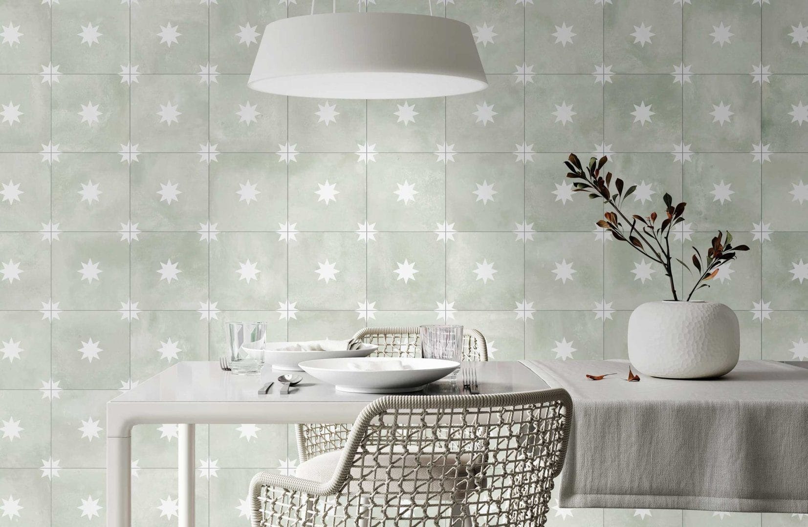 La serie STAR 44×44 es un porcelánico inspirado en los atemporales hidráulicos desgastados con precorte que imita piezas de 22×22 cm.