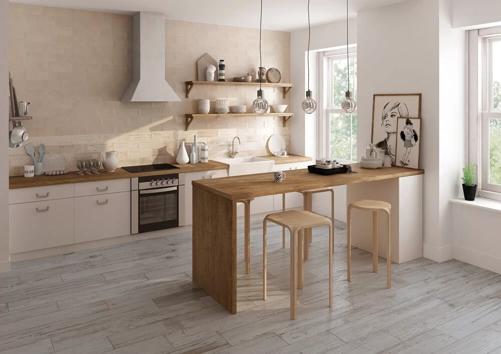 Porcelánico tipo madera al más puro estilo del ‘recupero’.